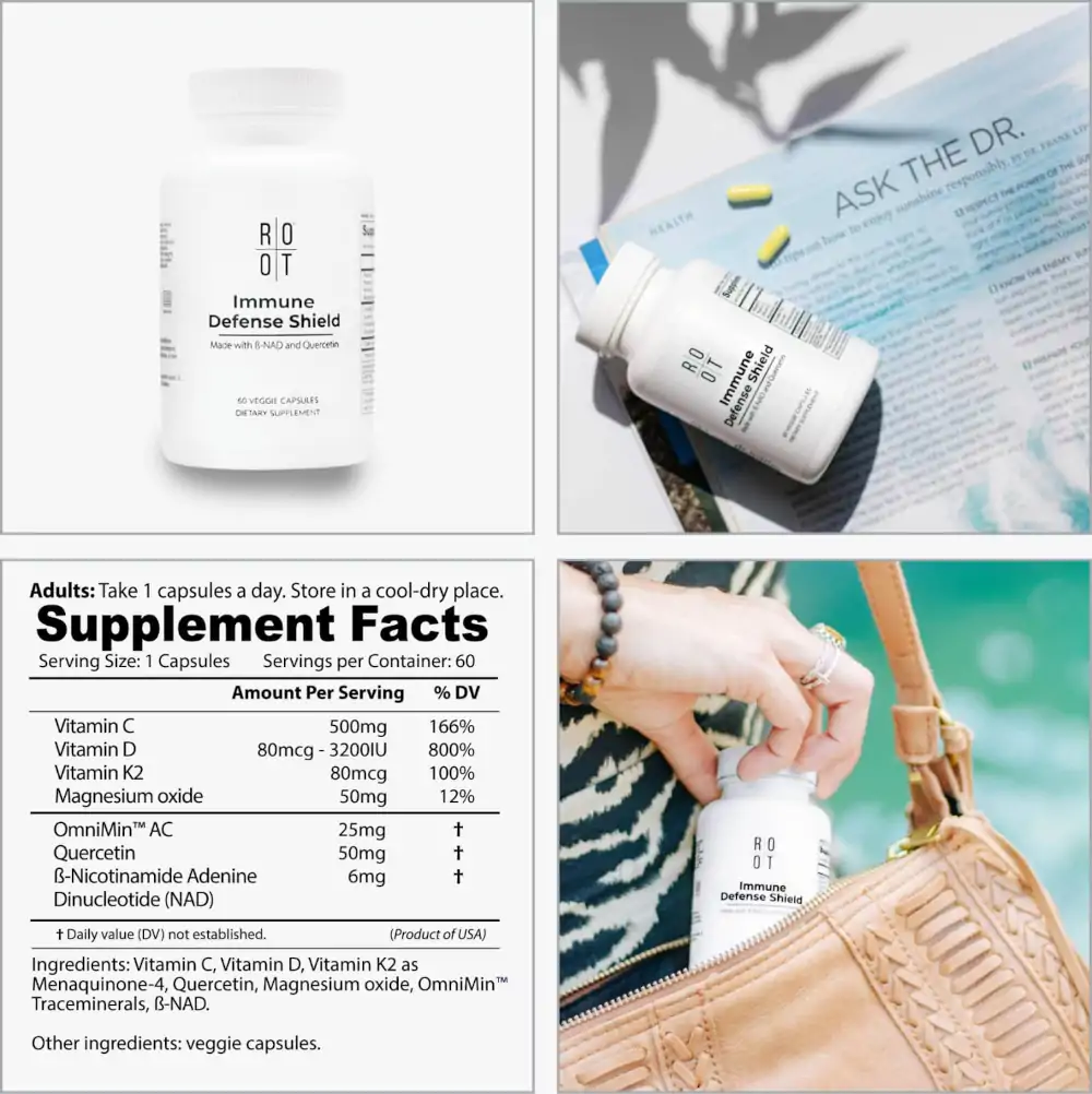 Immune Shield Defense is a proprietary combination of vitamins, minerals, flavonoids, and enzymes working together to maintain DNA integrity and ensure proper cell function, protecting our bodies from aging and disease.