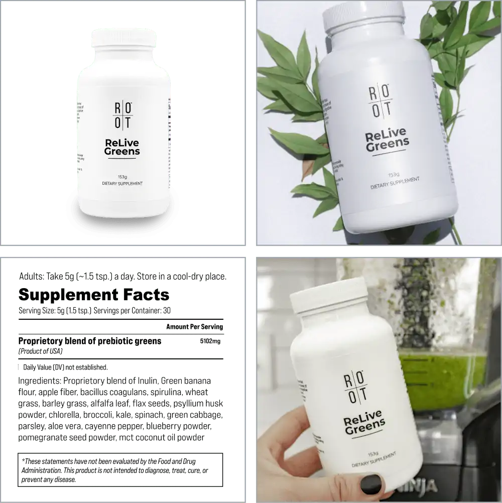 RELIVE GREENS is a powerhouse of vegetables, fruits, prebiotics, and probiotics to work synergistically to support a healthy immune system.
